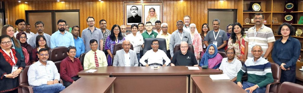 গাজীপুর সংবাদদাতা: মিশিগান স্টেট ইউনিভার্সিটি (MSU) প্রতিনিধি দল বুধবার (১৭ এপ্রিল) বাংলাদেশ কৃষি গবেষণা ইনস্টিটিউট (বারি) পরিদর্শন করেন। মিশিগান স্টেট ইউনিভার্সিটি প্রতিনিধি দলটি বারি সদর দপ্তরের সামনে এসে পৌঁছালে তাদের স্বাগত জানান ইনস্টিটিউটের বিজ্ঞানী ও কর্মকর্তাবৃন্দ। পরে বারি মহাপরিচালকের সভাকক্ষে অনুষ্ঠিত সংক্ষিপ্ত মত বিনিময় অনুষ্ঠানে স্বাগত বক্তব্য রাখেন ইনস্টিটিউটের মহাপরিচালক ড. দেবাশীষ সরকার| এসময় উপস্থিত ছিলেন পরিচালক (প্রশিক্ষণ ও যোগাযোগ) ড. মো. তারিকুল ইসলাম; পরিচালক (সেবা ও সরবরাহ) ড. ফেরদৌসী ইসলাম; পরিচালক (গবেষণা) ড. মো. আব্দুল্লাহ ইউছুফ আখন্দ; মিশিগান স্টেট ইউনিভার্সিটি এর ডিরেক্টর অফ এগ্রিবায়োরিসার্চ এবং সিনিয়র অ্যাসোসিয়েট ডিন ফর রিসার্চ, ড. জর্জ স্মিথ; মিশিগান স্টেট ইউনিভার্সিটি এর পরিচালক (ন্যাচারাল…