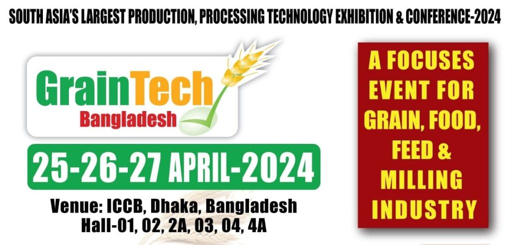 International Desk : “International GrainTech Bangladesh-2024”, the largest milling technology exhibition in South Asia in the last 15 years, will be held in Dhaka, the capital of Bangladesh. The 12th edition of ‘International GrainTech Bangladesh-2024’ will be held on April 25-27, 2024. International GrainTech Bangladesh-2024, concurrent with “AgroTech Bangladesh-2024” and “FoodTech Dhaka Expo-2024”. LIMRA Exhibitions and Rural Development Academy (RDA) will jointly organize the exhibition. This 12th International GrainTech Bangladesh-2024 will be held at International Convention City Bashundhara (ICCB), Kuril, Dhaka, Bangladesh. On April 25, 2024, the exhibition will be inaugurated by the Honorable Minister of Local Government, Rural Development…