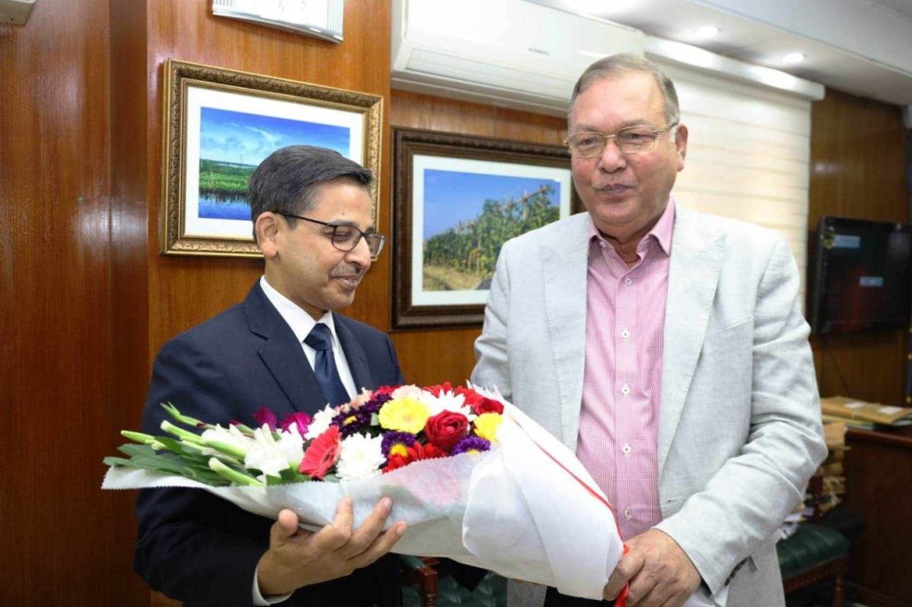 নিজস্ব প্রতিবেদক: সোমবার (০৫ ফেব্রুয়ারি) বিকালে সচিবালয়ে কৃষিমন্ত্রী ড. মো. আব্দুস শহীদ এর সঙ্গে বৈঠক করেছেন ঢাকায় নিযুক্ত ভারতের হাইকমিশনার প্রণয় ভার্মা। এসময় কৃষিসচিব ওয়াহিদা আক্তার উপস্থিত ছিলেন। বৈঠকে দুই দেশের কৃষিখাতে পারস্পরিক সহযোগিতা বৃদ্ধির বিষয়ে ফলপ্রসূ আলোচনা হয়। ভারতের উদ্ভাবিত বিভিন্ন ফসলের উচ্চফলনশীল জাত বাংলাদেশে অবমুক্তি, চাষ ও বীজ উৎপাদনের জন্য ভারতের সহযোগিতা কামনা করেন মন্ত্রী। সীমান্তমুক্ত বীজের প্রস্তাব দেন তিনি। এছাড়া, সেচকাজে সৌরবিদ্যুৎ ব্যবহার এবং বাংলাদেশকে রপ্তানি নিষেধাজ্ঞামুক্ত রেখে রমজান মাসে নিত্যপণ্যের দাম সহনীয় রাখতে ভারতের সহযোগিতা কামনা করেন মন্ত্রী। ভারতের হাইকমিশনার প্রণয় ভার্মা বলেন, ভারতেও মাঝেমধ্যে কোন কোন পণ্যের ঘাটতি দেখা দেয়, দাম বেড়ে যায়। সেজন্য, অনেক…