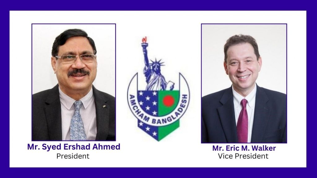 The American Chamber of Commerce in Bangladesh (AmCham) held its 27th Annual General Meeting (AGM) today at the Sheraton Hotel, Dhaka. AmCham President Syed Ershad Ahmed presided over the meeting. Mr. Aftab Ul Islam, Chairperson of the Election Board for AmCham Executive Committee 2023-25 declared the results of the election at the AGM. Mr. Syed Ershad Ahmed – Country Manager & Managing Director, Expeditors (Bangladesh) Ltd. has been re-elected as the President, Mr. Eric M. Walker, President, Chevron Bangladesh has been elected as the Vice President and Mr. Al-Mamun M Rashel, Country Manager & Managing Director, NATco Bangladesh Ltd. has…