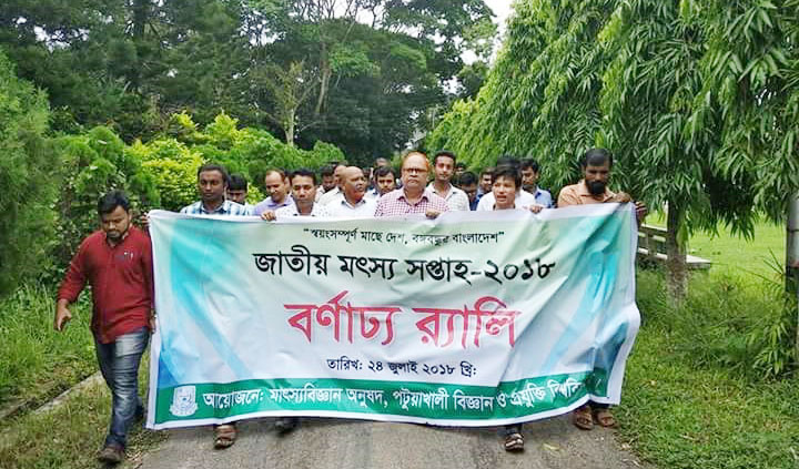 ইফরান আল রাফি (পবিপ্রবি প্রতিনিধি): “স্বয়ংসম্পূর্ণ মাছে দেশ, বঙ্গবন্ধুর বাংলাদেশ” এই শ্লোগানকে সামনে রেখে জাতীয় মৎস্য সপ্তাহ ২০১৮ উপলক্ষে পটুয়াখালী বিজ্ঞান ও প্রযুক্তি বিশ্ববিদ্যালয়ে মাৎস্যবিজ্ঞান অনুষদের উদ্যোগে বর্ণাঢ্য র্যালি অনুষ্ঠিত হয়েছে। র্যালিটি মঙ্গবার (২৪ জুলাই) ১০ ঘটিকায় বিশ্ববিদ্যালয়ের মাৎস্যবিজ্ঞান অনুষদ ভবনের সামনে থেকে যাত্রা শুরু করে এবং বিশ্ববিদ্যালয়ের প্রধান প্রধান সড়ক প্রদক্ষিণ করে নীল কমল লেক পাড়ে এসে শেষ হয়। র্যালিতে উপস্থিত ছিলেন বিশ্ববিদ্যালয়ের উপ-উপাচার্য ও মাৎস্যবিজ্ঞান অনুষদের ডিন প্রফেসর মোহাম্মাদ আলী, অত্র অনুষদের বিভিন্ন বিভাগের চেয়ারম্যান, শিক্ষকমন্ডলী, ছাত্রছাত্রী, কর্মকর্তা এবং কর্মচারী বৃন্দ। বিশ্ববিদ্যালয়ের নীল কমল লেকে দেশীয় প্রজাতির পোনা অবমুক্তকরন করা হয় এবং এক সংক্ষিপ্ত আলোচনা সভা অনুষ্ঠিত হয়। আলোচনা…