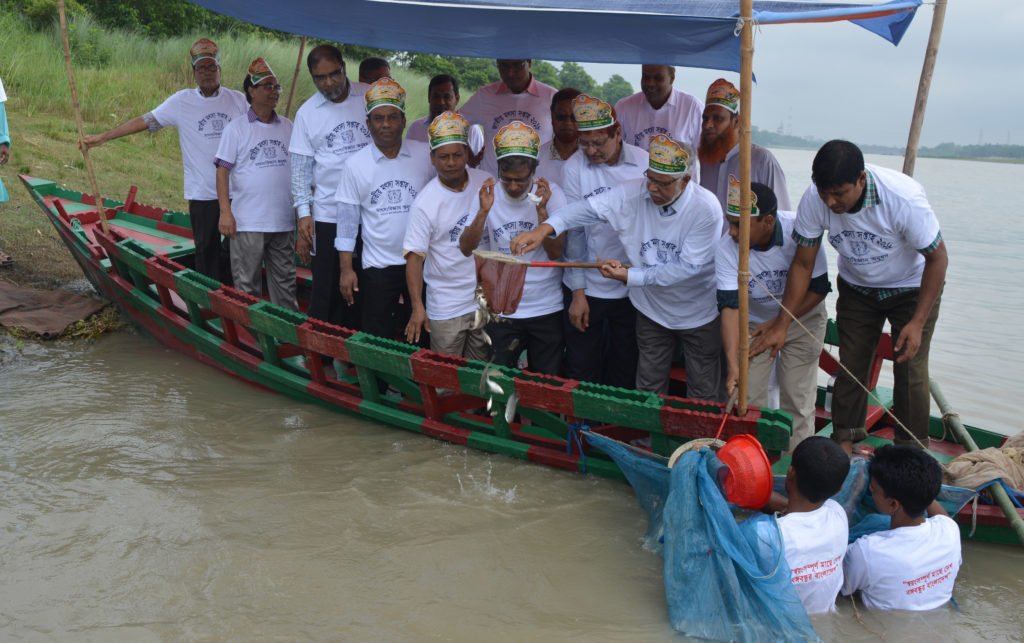 মো. আরিফুল ইসলাম (বাকৃবি): ‘স্বয়ংসম্পূর্ণ মাছে দেশ, বঙ্গবন্ধুর বাংলাদেশ’ স্লোগানকে সামনে রেখে মঙ্গলবার (২৪ জুলাই ২০১৮) বাংলাদেশ কৃষি বিশ্ববিদ্যালয়ে (বাকৃবি) জাতীয় মৎস্য সপ্তাহ ২০১৮ উদযাপিত হয়েছে। দিবসটি উপলক্ষে এক বর্ণাঢ্য র্যালি, মাছের পোনা অবমুক্তকরণ ও সেমিনার আয়োজন করে মাৎস্যবিজ্ঞান অনুষদ। দিবসটি উপলক্ষে সকাল ১০ টায় এক বর্ণাঢ্য র্যালি বের করা হয়। র্যালিটি বিশ্ববিদ্যালয়ের মাৎস্যবিজ্ঞান অনুষদ থেকে শুরু হয়ে প্রধান সড়কগুলো প্রদক্ষিণ করে ব্রহ্মপুত্র নদে গিয়ে শেষ হয়। র্যালি শেষে ব্রহ্মপুত্র নদে মাছের পোনা অবমুক্ত করা হয়। এ উপলক্ষ্যে আয়োজিত সেমিনারে মাৎস্যবিজ্ঞান অনুষদের ডিন অধ্যাপক ড. গিয়াস উদ্দিন আহমদদের সভাপতিত্বে প্রধান অতিথি হিসেবে উপস্থিত ছিলেন বিশ্ববিদ্যালয়ের উপ-উপাচার্য অধ্যাপক ড. মো. জসিমউদ্দিন…