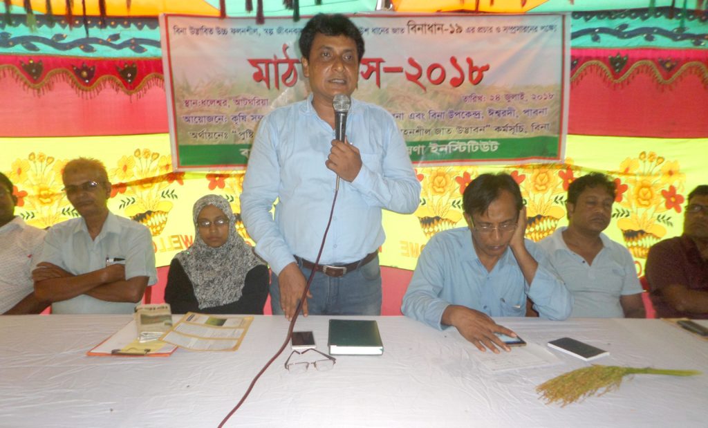 এ.টি.এম ফজলুল করিম (পাবনা) : বাংলাদেশ পরমানু কৃষি গবেষণা ইনষ্টিটিউট কর্তৃক উদ্ভাবিত বিনা ধান-১৯ এর প্রচার ও সম্প্রসারণের লক্ষ্যে এক মাঠ দিবস আটঘরিয়া উপজেলার ধলেশ্বর গ্রামের মাদ্রাসা মাঠে গতকাল (২৪ জুলাই) অনুষ্ঠিত হয়। আটঘরিয়া উপজেলা কৃষি কর্মকর্তা কৃষিবিদ প্রশান্ত কুমার সরকারের সভাপতিত্বে অনুষ্ঠিত মাঠ দিবসে প্রধান অতিথি হিসেবে উপস্থিত ছিলেন পাবনাস্থ কৃষি সম্প্রসারণ অধিদপ্তরের অতিঃ উপ-পরিচালক কৃষিবিদ খয়ের উদ্দিন মোল্লা। বিশেষ অতিথি হিসেবে উপস্থিত ছিলেন বাংলাদেশ পরমানু কৃষি গবেষণা ইনস্টিটিউট, ঈশ্বরদীস্থ উপকেন্দ্রের ঊধ্বর্তন বৈজ্ঞানিক কর্মকর্তা ড. মো. রোকনুজ্জামান, আটঘরিয়া, উপজেলা কৃষি বিভাগের কৃষি সম্প্রসারণ কর্মকর্তা কৃষিবিদ মো. আব্দুর রাজ্জাক, পাবনা আঞ্চলিক কৃষি তথ্য সার্ভিসের কর্মকর্তা এ.টি.এম ফজলুল করিম এবং স্থানীয়…