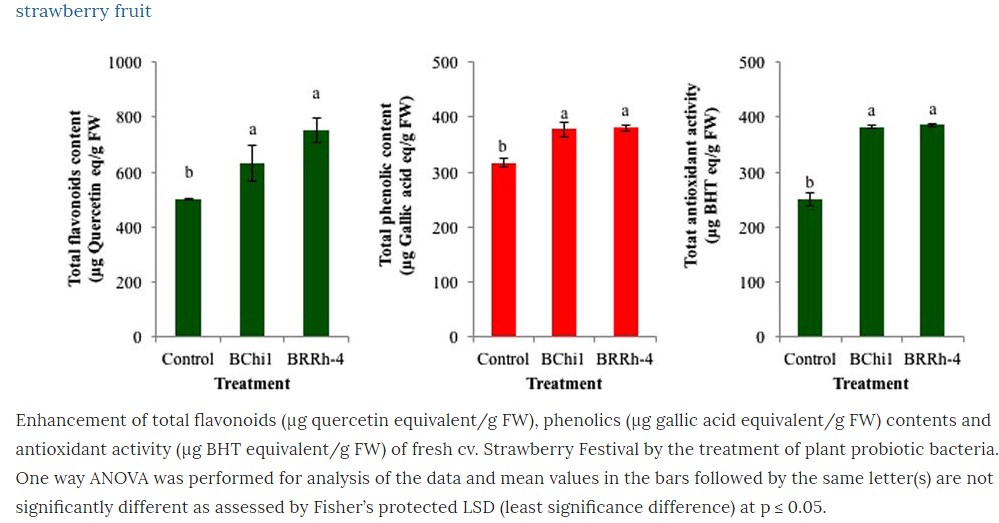 বঙ্গবন্ধু শেখ মুজিবুর রহমান কৃষি বিশ্ববিদ্যালয় (বিএসএমআরএইউ) -এর গবেষকরা মার্কিন যুক্তরাষ্ট্রের ওয়েস্ট ভার্জিনিয়া বিশ্ববিদ্যালয়ের একজন সহকর্মীর সাথে কাজ করে মরিচ এবং ধানের শিকড় থেকে দুটি নতুন ব্যাকটেরিয়া প্রজাতি আবিষ্কার করেছেন যা কোন রাসায়নিক বালাইনাশক ব্যবহার না করে স্ট্রবেরির ফলন ৪৮% বৃদ্ধি করে। এই প্রাকৃতিক এজেন্ট স্ট্রবেরি ফলে ব্যবহার করে এজেন্ট ব্যবহার না করা ফলের চেয়ে ২-৩ গুণ বেশি বিভিন্ন সেকেন্ডারি বিপাক যেমন ফেনলিক ও ভিটামিন সি পাওয়া গেছে। উচ্চ অ্যান্টিঅক্সিডেন্ট কার্যকলাপ সমৃদ্ধএই স্ট্রবেরি ক্যান্সার সহ বিভিন্ন রোগ থেকে মানুষের স্বাস্থ্য রক্ষা করতে ভূমিকা পালন করতে পারে।