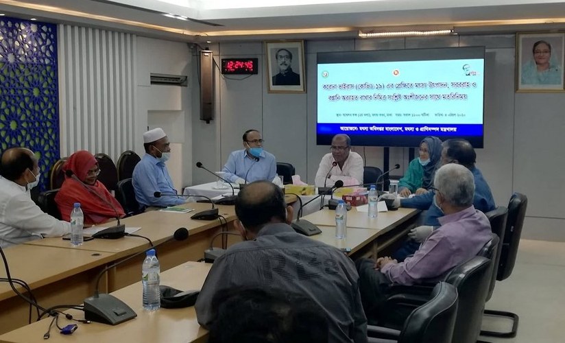 মৎস্য ও প্রাণিসম্পদ মন্ত্রী শ. ম. রেজাউল করিম এমপি’র নির্দেশনায় শনিবার (০৪ এপ্রিল) রাজধানীর মৎস ভবনে মৎস্য অধিদপ্তরের সম্মেলন কক্ষে করোনা সংকটকালীন মৎস্য উৎপাদন, সরবরাহ, বিপণন ও রপ্তানি অব্যাহত রাখার বিষয়ে মৎস্য ও প্রাণিসম্পদ মন্ত্রণালয় ও মৎস্য অধিদপ্তরের ঊর্ধ্বতন কর্মকর্তাদের সাথে মৎস্য খাতের অংশীজনদের মতবিনিময় সভায় এ সকল আহ্বান জানানো হয়।