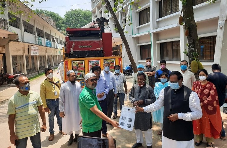 সংসদ সদস্য আলহাজ্ব অ্যাডভোকেট শামসুল আলম দুদু বলেন, আওয়ামী লীগ কৃষি বান্ধব দল। প্রধানমন্ত্রী শেখ হাসিনার সরকার সব সময় কৃষকদের কল্যাণে কাজ করে। প্রাণঘাতি করোনাভাইরাস সংক্রমণ মোকাবেলা জনিত বর্তমান পরিস্থিতিতে শ্রমিক সংকটে চরম বিপাকে পড়া কৃষকদের বিপদমুক্ত করতে মোট ৪ ধান কাটা কম্বাইন্ড হারভেস্টর দেওয়া হলো। আশা করি এতে দ্রুত কৃষকদের পাকা ধান কাটা ও মারাই করা সম্ভব হবে। মেশিনটির ব্যবহার বাড়ানো গেলে কম খরচে বেশি ফসল উৎপাদন সম্ভব। কৃষি যান্ত্রিকীকরণের অংশ হিসাবে এ মেশিন কিনতে এখন সরকার থেকে কম্বাইন হারভেস্টারের দামের প্রায় অর্ধেক ভর্তুকি দিয়েছে ভূর্তকির পরিমান ১৪ লাখ টাকা। কম্বাইন হারভেস্টারের দাম ২৯ লাখ ৫০ হাজার টাকা কৃষকের মাঝে বিতরন করা হলো ১৫ লক্ষ্য ৫০ হাজার টাকার গ্রহনের মাধ্যেমে।