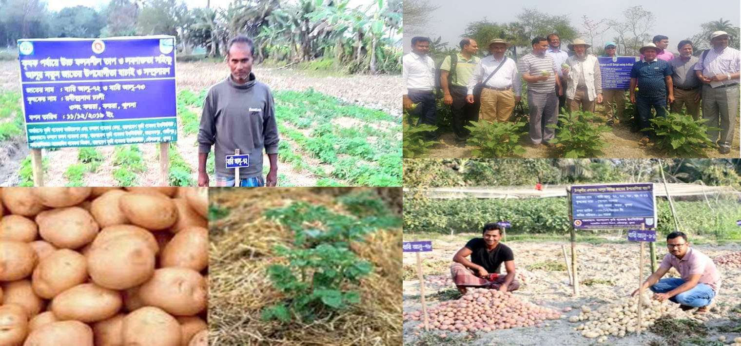 ফকির শহিদুল ইসলাম (খুলনা) : দেশের সমুদ্র উপকূলীয় অঞ্চলে বিস্তীর্ণ এলাকা শুষ্ক মৌসুমে লবণাক্ততার কারনে বিপুল পরিমাণ কৃষি জমি পতিত থাকে। যে কারনে দেশের দক্ষিণাঞ্চলের এসব কৃষি জমিতে বিভিন্ন ফসল ফলানোর জন্য খুলনার কয়রায় একাধিক ফসলের মাঠ পরিক্ষামূলকভাবে তৈরি করেছেন বাংলাদেশ কৃষি গবেষণা ইনস্টিটিউট সরেজমিন গবেষণা বিভাগ । তেমনি একটি ফসল বিনা চাষে আলু চাষ পদ্ধতির সফলতা পায় কৃষি গবেষণা ইনস্টিটিউট সরেজমিন গবেষণা বিভাগ । সরেজমিন গবেষণা বিভাগের খুলনা প্রধান বৈজ্ঞানিক কর্মকর্তা ড. হারুনুর রশিদের নিকট থেকে স্থানীয় কৃষকরা বিনা চাষে আলু রোপনে উৎসাহিত হয়ে ইতিমধ্যে ব্যাপক সফলতা পেয়েছেন। ফলে এলাকার কৃষকদের মধ্যে বিনাচাষের আলু উৎপাদনে আগ্রহ বেড়েছে। বিনা চাষে আলুর উৎপাদনে ধারাবাহিক তাদের সফলতায় স্থানীয় কৃষকের কাছে জনপ্রিয় হয়ে উঠেছে আলু চাষ। জানা যায়, ঘূর্ণিঝড় আম্পানে ক্ষতিগ্রস্ত কয়রা উপজেলার কয়রা সদর ইউনিয়নের তিন নম্বর কয়রা গ্রামের কয়েকজন কৃষক ২০২০ সালে বিনা চাষে আলু চাষ শুরু করেন। এ অভিনব চাষাবাদ দেখে এলাকার অনেক কৃষক সরেজমিন কৃষি গবেষণা বিভাগের পরামর্শক্রমে বিনা চাষে আলু আবাদে ঝুকে পড়েছেন।