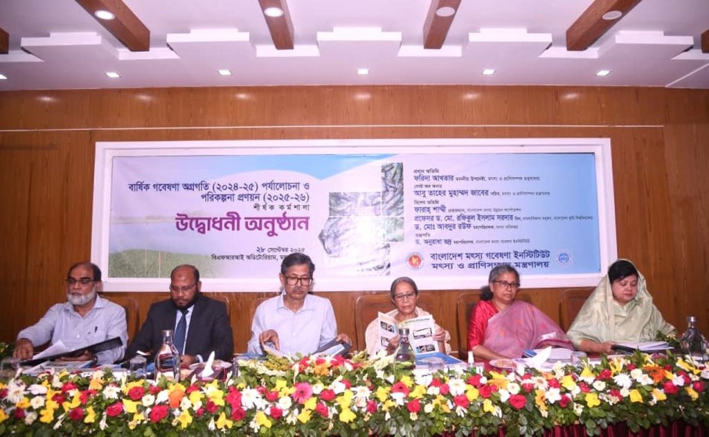 কর্মশালার বিএফআরআই-এর মহাপরিচালক ড. অনুরাধা ভদ্রের সভাপতিত্বে গেস্ট অব অনার হিসেবে উপস্থিত ছিলেন মৎস্য ও প্রাণিসম্পদ মন্ত্রণালয়ের সচিব আবু তাহের মুহাম্মদ জাবের। তিনি বলেন, দেশের মৎস্য সম্পদের পর্যাপ্ত যোগান নিশ্চিত করতে বিজ্ঞানীরা গুরুত্বপূর্ণ ভূমিকা পালন করছেন। কিন্তু দুঃখজনকভাবে তাদের প্রাপ্য সুযোগ-সুবিধা পর্যাপ্ত নয়। বিজ্ঞানীদের সুযোগ নিশ্চিত করা গেলে তারা আরো অনুপ্রাণিত হয়ে নতুন নতুন মাছের জাত উদ্ভাবনে এগিয়ে আসবেন। এসময় তিনি মাছের প্রাপ্যতা বৃদ্ধিতে জলবায়ু পরিবর্তনের প্রভাব মোকাবিলা, পানি দূষণ নিয়ন্ত্রণ, দক্ষ জনশক্তি তৈরি এবং প্রযুক্তিগত সক্ষমতা বৃদ্ধির বিষয়েও গুরুত্ব আরোপ করেন।