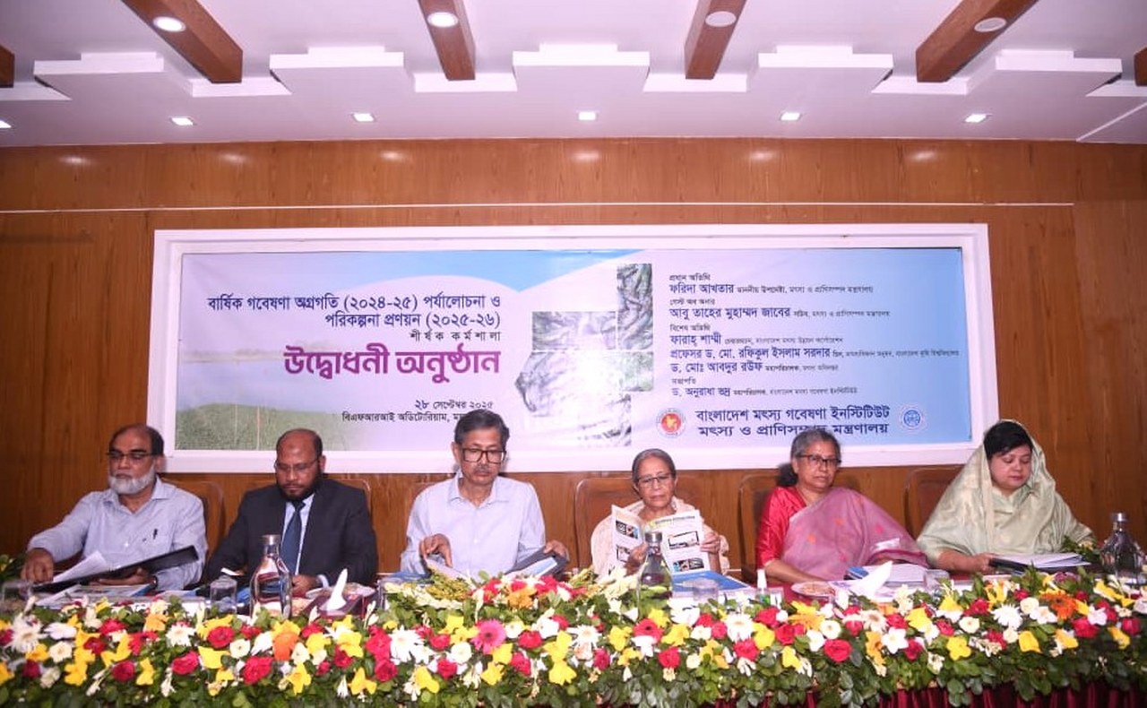 উপদেষ্টা আজ (২৮ সেপ্টেম্বর) সকালে বাংলাদেশ মৎস্য গবেষণা ইনস্টিটিউট (বিএফআরআই)-এর অডিটোরিয়ামে আয়োজিত “বার্ষিক গবেষণা অগ্রগতি (২০২৪-২৫) পর্যালোচনা এবং পরিকল্পনা প্রণয়ন (২০২৫-২৬)” শীর্ষক কর্মশালায় এসব কথা বলেন।