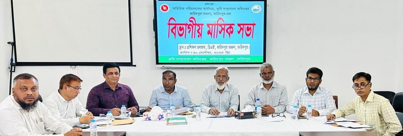 ফরিদপুর সংবাদদাতা: কৃষি সম্প্রসারণ অধিদপ্তরের আঞ্চলিক সভা মঙ্গলবার (৩০ সেপ্টেম্বর) নগরীর খামারবাড়িতে কৃষি সম্প্রসারণ ফরিদপুর অঞ্চল ফরিদপুরের উদ্যেগে সভার আয়োজন করা হয়। সভায় সভাপতিত্ব করেন, কৃষিবিদ মোহাম্মদ খয়ের উদ্দিন মোল্লা, অতিরিক্ত পরিচালক, কৃষি সম্প্রসারণ ফরিদপুর অঞ্চল, ফরিদপুর।