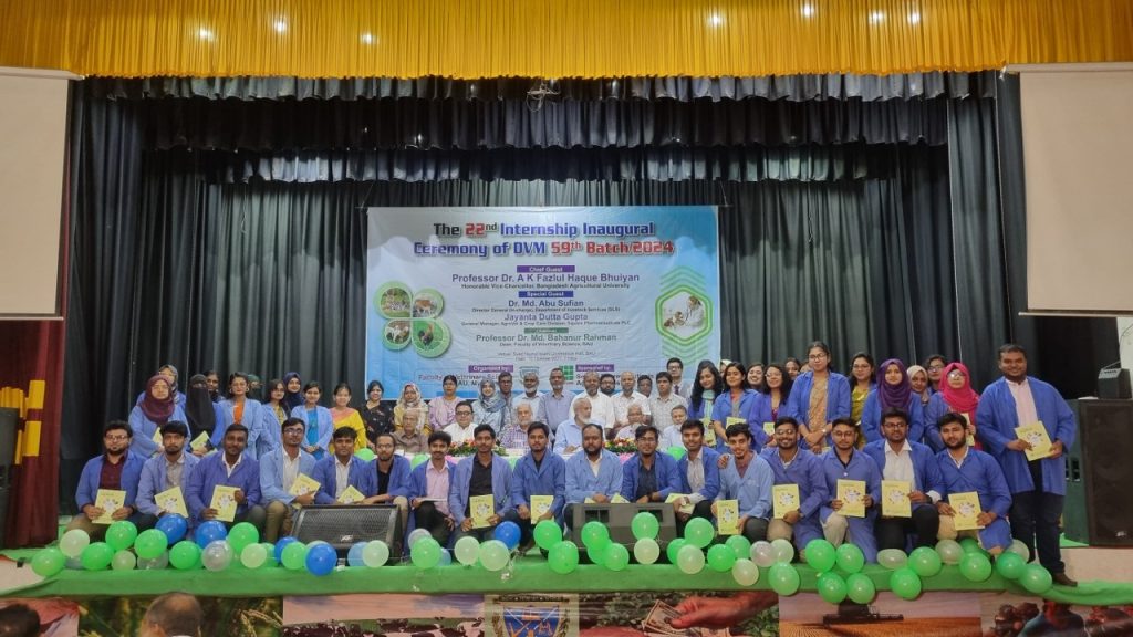 বাকৃবি সংবাদদাতা: বাংলাদেশ কৃষি বিশ্ববিদ্যালয়ে (বাকৃবি) ভেটেরিনারি অনুষদের ২২তম ইন্টার্নশিপ ব্যাচের ইন্টার্নশীপের উদ্বোধনী অনুষ্ঠিত হয়েছে। এবছর বাংলাদেশ ছাড়াও বিশ্বের আরও ছয়টি দেশে ৫০ জন শিক্ষার্থী ইন্টার্নশিপের সুযোগ পেয়েছে। সবমিলিয়ে ১৯৩ জন ভেটেরিনারি অনুষদের শিক্ষার্থী এবারের ইন্টার্নশিপে অংশ নিচ্ছেন।
