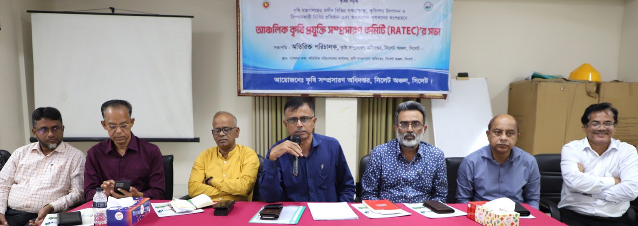 সিলেট সংবাদদাতা: কৃষি সম্প্রসারণ অধিদপ্তর, সিলেট অঞ্চল, সিলেট এর আয়োজনে আঞ্চলিক পর্যায়ে কৃষি প্রুক্তি সম্পসারণ কমিটিরি (RATECC) সভা হর্টিকালচার সেন্টার, খাদিমনগর, সিলেট এর প্রশিক্ষণ কক্ষে বৃহস্পতিবার (১৬ অক্টোবর) অনুষ্ঠিত হয়।