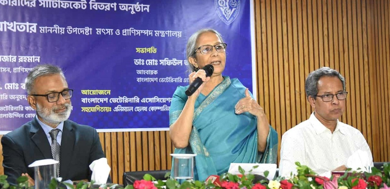 উপদেষ্টা শনিবার (২৫ অক্টোবর) বিকালে বাংলাদেশ ভেটেরিনারি কাউন্সিল অডিটরিয়ামে নবীন ভেটেরিনারি গ্র্যাজুয়েটদের জন্য আয়োজিত “হ্যান্ডস-অন ট্রেনিং প্রোগ্রাম ফর ফ্রেশ ভেটেরিনারি গ্র্যাজুয়েটস”-এর সার্টিফিকেট বিতরণ অনুষ্ঠানে প্রধান অতিথির বক্তৃতায় এসব কথা বলেন। বাংলাদেশ ভেটেরিনারি এসোসিয়েশন (বিভিএ) -এর উদ্যোগে এবং এনিম্যাল হেলথ কোম্পানিজ এসোসিয়েশন অব বাংলাদেশ (আহকাব)-এর সহযোগিতায় অনুষ্ঠানটি সম্পন্ন হয়।