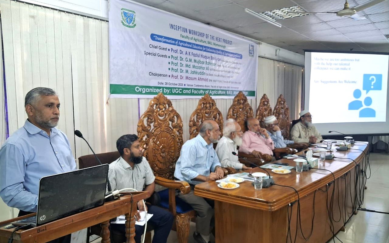 কর্মশালায় স্বাগত বক্তব্য রাখেন এইচইএটি প্রকল্পের সহকারী উপ-প্রকল্প ব্যবস্থাপক অধ্যাপক ড. আবু জোফার মো. মোসলেহ উদ্দিন। এরপর প্রকল্প উপস্থাপনা করেন অধ্যাপক ড. মো মফিজুর রহমান জাহাঙ্গীর। কর্মশালায় কৃষি অনুষদের শিক্ষকবৃন্দ, গবেষক ও সংশ্লিষ্ট কর্মকর্তারা উপস্থিত ছিলেন।
