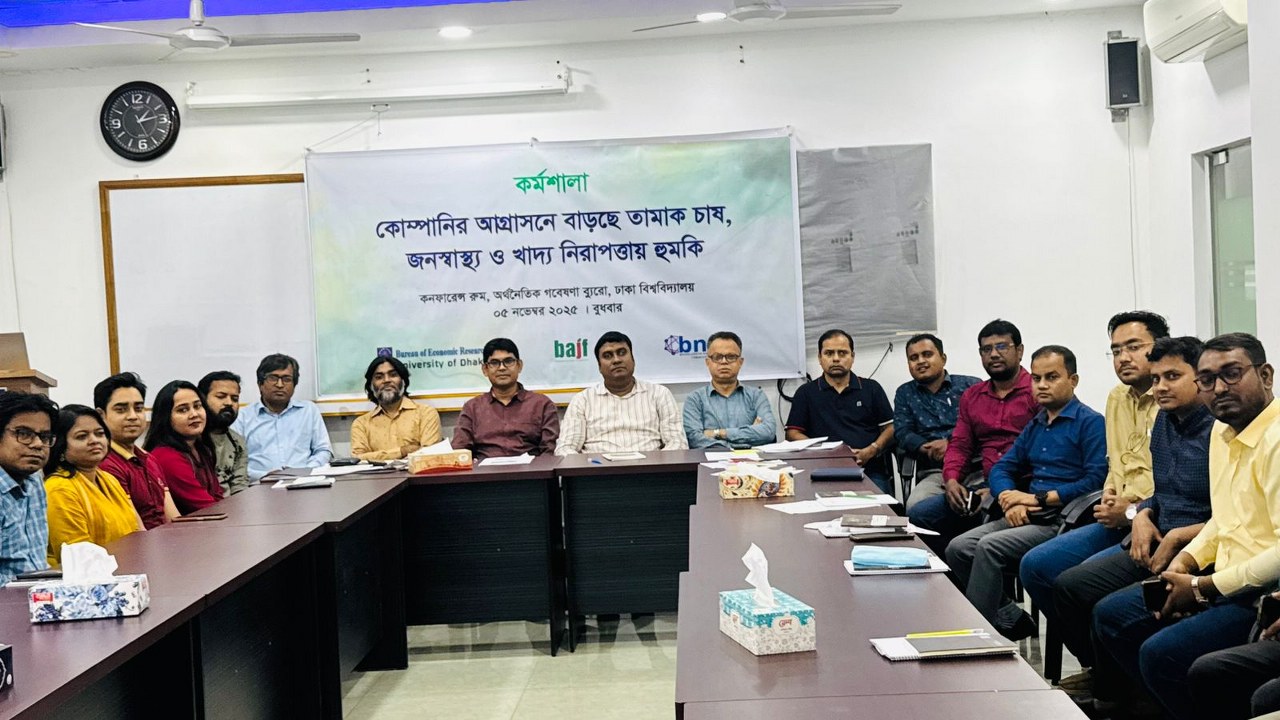 বুধবার (৫ নভেম্বর) ঢাকা বিশ্ববিদ্যালয়ের অর্থনৈতিক গবেষণা ব্যুরো (বিইআর) কনফারেন্স রুমে কোম্পানির আগ্রাসনে বাড়ছে তামাক চাষ, জনস্বাস্থ্য ও খাদ্য নিরাপত্তায় হুমকি শীর্ষক কর্মশালায় এসব তথ্য উঠে আসে। কর্মশালার আয়োজন করে ঢাবির অর্থনৈতিক গবেষণা ব্যুরো, বাংলাদেশ কৃষি সাংবাদিক ফোরাম (বিএজেএফ) ও বাংলাদেশ নেটওয়ার্ক ফর টোব্যাকো ট্যাক্স পলিসি (বিএনটিটিপি)। অনুষ্ঠানে স্বাগত বক্তব্য রাখেন বিএজেএফ এর সাধারণ সম্পাদক আবু খালিদ ও মূল প্রবন্ধ উপস্থাপন করেন বিএনটিটিপির টেকনিক্যাল কমিটির সদস্য ও বিএজেএফের গবেষনা সম্পাদক সুশান্ত সিনহা।