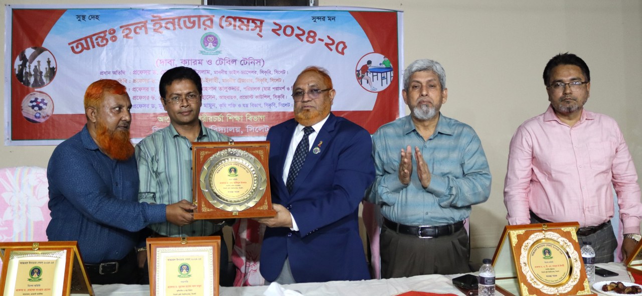 সিকৃবি সংবাদদাতা: সিলেট কৃষি বিশ্ববিদ্যালয়ে (সিকৃবি) আন্তঃ হল ইনডোর গেমস্ ২০২৪-২৫ (দাবা, ক্যারম, টেবিল-টেনিস) এর ফাইনাল খেলা ও পুরস্কার বিতরণী অনুষ্ঠিত হয়েছে। বৃহস্পতিবার (০৬ নভেম্বর) সিকৃবি কেন্দ্রীয় অডিটোরিয়ামের বহিরাঙ্গনে অনুষ্ঠিত আন্তঃহল ক্রীড়া প্রতিযোগিতার ফাইনালের পুরষ্কার বিতরণী অনুষ্ঠানে শরীরচর্চা শিক্ষা বিভাগের পরিচালক (অ.দা.) মোহাম্মদ নেয়ামত উল্যাহ এর সঞ্চালনায় এবং কৃষি শক্তি ও যন্ত্র বিভাগের প্রফেসর ড. মুহাম্মদ রাশেদ আল মামুন এর সভাপতিত্বে প্রধান অতিথি হিসেবে উপস্থিত থেকে বিজয়ীদের হাতে পুরস্কার তুলে দেন সিকৃবি’র ভাইস-চ্যান্সেলর প্রফেসর ড. মোঃ আলিমুল ইসলাম। বিশেষ অতিথি হিসেবে উপস্থিত ছিলেন ট্রেজারার প্রফেসর ড. এ.টি.এম. মাহবুব-ই-ইলাহী, ছাত্র পরামর্শ ও নির্দেশনা দপ্তরের পরিচালক প্রফেসর ড. মোহাম্মদ সামিউল আহসান তালুকদার, প্রভোস্ট কাউন্সিলের আহবায়ক প্রফেসর ড. মোহাম্মদ কাওছার হোসেন। পুরষ্কার বিতরণী অনুষ্ঠানে অন্যান্যের মধ্যে হল প্রভোস্ট, শিক্ষক, শিক্ষার্থী, কর্মকর্তা ও কর্মচারীবৃন্দ উপস্থিত ছিলেন।পুরস্কার বিতরণী অনুষ্ঠানে