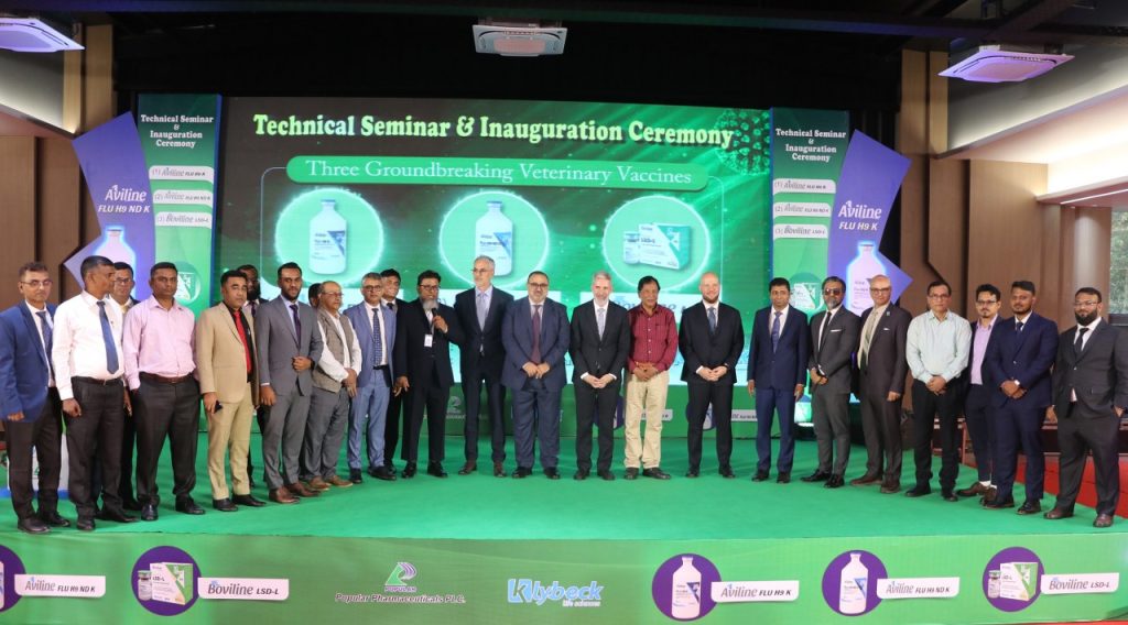 Special Correspondent: A high-profile technical seminar and inauguration ceremony was held today (November 08) at Sarah Resort in Gazipur as Popular Pharmaceuticals PLC officially launched three next-generation veterinary vaccines developed by Klybeck Life Sciences. The event brought together senior officials, veterinary specialists, researchers and industry leaders, reflecting the growing national emphasis on modern livestock healthcare.