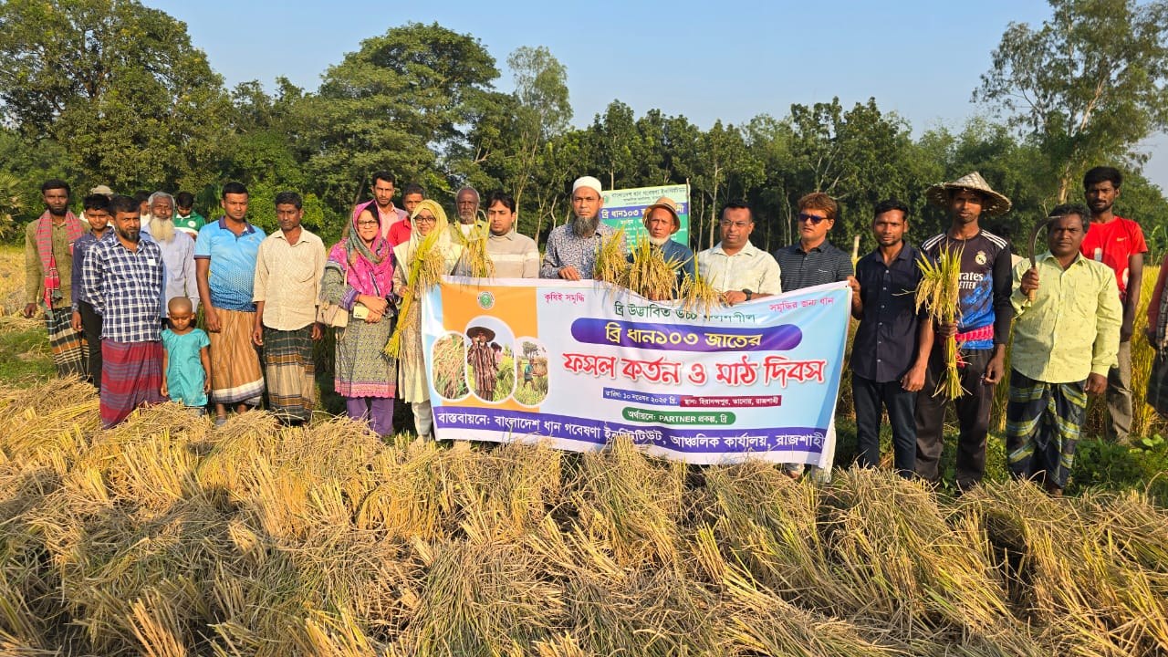 মাঠ দিবসে প্রধান অতিথি বলেন, স্বর্ণা ধান আমন মৌসুমে রাজশাহীর চাষিদের কাছে আগে থেকেই জনপ্রিয়। এ বছরও রাজশাহীতে এই ধান চাষ হয়েছে ব্যাপক। গত ৩১ অক্টোবর রাতে ঘূর্ণিঝড় মোন্থার প্রভাবে যে বৃষ্টি ও বাতাস হয়েছে, তাতেই মাঠের স্বর্ণা ধান শুয়ে পড়েছে। কিন্তু পাশেই আটজন চাষির ব্রি-১০৩ ধান দাঁড়িয়ে রয়েছে। এই ধানের গাছও স্বর্ণার চেয়ে লম্বা। কাণ্ড শক্ত তাই বাতাসে হেলে পড়েনি। পেকেছে স্বর্ণার চেয়ে প্রায় ১৫ দিন আগে।