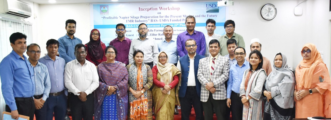 নিজস্ব প্রতিবেদক: (১২ নভেম্বর) বুধবার বাংলাদেশ প্রাণিসম্পদ গবেষণা ইনস্টিটিউট (বিএলআরআই) কর্তৃক বাস্তবায়িত এবং Bangladesh Academy of Science (BAS) এর অধীনে U.S. Department of Agriculture (USDA) এর অর্থায়নে পরিচালিত “Profitable Napier silage preparation for the present market and the future TMR industry” শীর্ষক প্রকল্পের ইনসেপশন কর্মশালা অনুষ্ঠিত হয়েছে।
