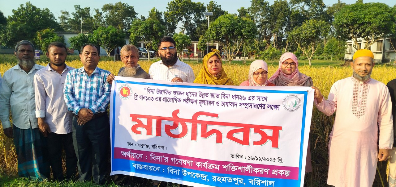 বিনার ভারপ্রাপ্ত কর্মকর্তা বলেন, চলতি বছরে বিনাধান-২৬’র ১ টন বীজ বরিশাল অঞ্চলের বিভিন্ন উপজেলায় বিনামূল্যে কৃষকদের মাঝে বিতরণ করা হয়। মাঠ দিবসে অর্ধশতাধিক কৃষক উপস্থিত ছিলেন।