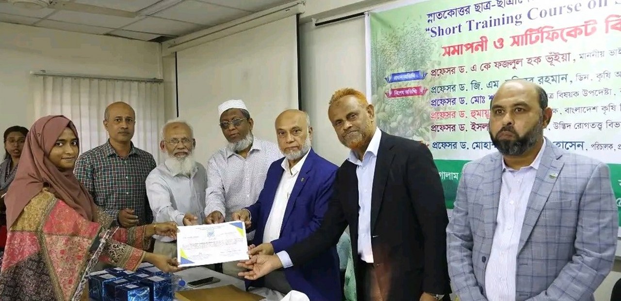 বুধবার (১৯ নভেম্বর) বিকালে বিশ্ববিদ্যালয়ের প্রফেসর গোলাম আলী ফকির সীড প্যাথলজি সেন্টারে এ অনুষ্ঠানের আয়োজন করা হয়। ১৫ দিনব্যাপী এ প্রশিক্ষণ কর্মশালায় মোট ২৫ জন স্নাতকোত্তর শিক্ষার্থী অংশগ্রহণ করেছেন।