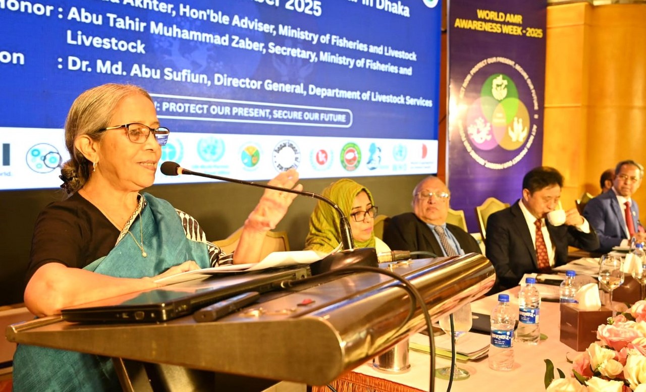 নিজস্ব প্রতিবেদক: মৎস্য ও প্রাণিসম্পদ উপদেষ্টা ফরিদা আখতার বলেছেন, এন্টিবায়োটিকের অনিয়ন্ত্রিত ব্যবহার এখন দেশের স্বাস্থ্য, প্রাণিসম্পদ, মৎস্য এবং এমনকি কৃষি খাতেও গুরুতর সংকট সৃষ্টি করছে। এ পরিস্থিতি মোকাবিলায় প্রিভেন্টিভ প্র্যাকটিস, ওয়ান হেলথ সহযোগিতা এবং শক্তিশালী নিয়ন্ত্রণব্যবস্থা ছাড়া অ্যান্টিমাইক্রোবিয়াল রেজিস্ট্যান্স (এএমআর) মোকাবিলা সম্ভব নয়। তাই অবিলম্বে সমন্বিত প্রতিরোধমূলক ব্যবস্থা গ্রহণ প্রয়োজন।