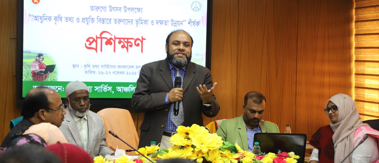 রাজশাহী সংবাদদাতা: কৃষি তথ্য সার্ভিস রাজশাহীর আয়োজনে (২৬-২৭ নভেম্বর) কৃষি তথ্য সার্ভিস রাজশাহীর কনফারেন্স রুমে কৃষি তথ্য ও যোগাযোগ কেন্দ্র এর (এআইসিসি) সদস্যদের নিয়ে “আধুনিক কৃষি তথ্য ও প্রযুক্তি বিস্তারে তরুণদের ভূমিকা ও দক্ষতা উন্নয়ন” শীর্ষক দুই দিনব্যাপী প্রশিক্ষণ অনুষ্ঠিত হয়। প্রধান অতিথি হিসেবে প্রশিক্ষণের শুভ উদ্বোধন করেন রাজশাহী অঞ্চলের কৃষি সম্প্রসারণ অধিদপ্তরের অতিরিক্ত পরিচালক কৃষিবিদ ড. মো: আজিজুর রহমান। এসময় বিশেষ অতিথি হিসেবে উপস্থিত ছিলেন রাজশাহী অঞ্চল, রাজশাহীর আঞ্চলিক বীজ প্রত্যয়ন অফিসার কৃষিবিদ ড. মো: মোতালেব হোসেন। উদ্বোধনী অনুষ্ঠানে সভাপতিত্ব করেন রাজশাহী কৃষি সম্প্রসারণ অধিদপ্তরের উপপরিচালক কৃষিবিদ মোহাম্মদ নাসির উদ্দিন। প্রধান অতিথি রাজশাহী অঞ্চলের কৃষি সম্প্রসারণ অধিদপ্তরের অতিরিক্ত পরিচালক কৃষিবিদ ড. মো: আজিজুর রহমান বলেন, কৃষকের দোড়গোড়ায় কৃষি তথ্য পৌঁছে দিতে কৃষি তথ্য ও যোগাযোগ কেন্দ্র স্থাপিত হয়েছে। তিনি উপস্থিত প্রত্যেক কৃষি তথ্য ও যোগাযোগ প্রতিনিধিদের প্রশিক্ষণ গ্রহণ করে প্রশিক্ষণ লব্ধ জ্ঞান এলাকায় ছড়িয়ে দেওয়ার জন্য অনুরোধ জানান।