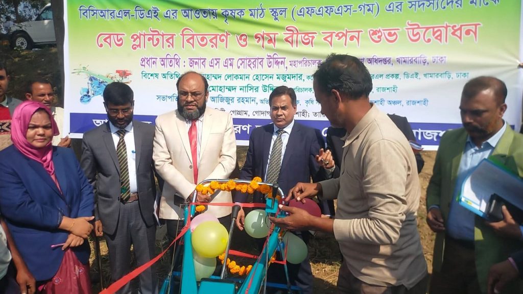 মো. এমদাদুল হক (রাজশাহী): “Building Climate Resilient Livelihoods in Vulnerable Landscapes in Bangladesh (BCRL)” প্রকল্পের আওতায় রাজশাহীর গোদাগাড়ী উপজেলায় বেড প্লান্টার বিতরণ, বেড প্লান্টারের মাধ্যমে গম বীজ বপনের উদ্বোধন এবং কৃষকদের সঙ্গে মতবিনিময় সভা অনুষ্ঠিত হয়েছে। গত ২৭ নভেম্বর অনুষ্ঠানে প্রধান অতিথি হিসেবে উপস্থিত থেকে এসব কার্যক্রমের আনুষ্ঠানিক উদ্বোধন করেন কৃষি সম্প্রসারণ অধিদপ্তরের মহাপরিচালক এস এম সোহরাব উদ্দিন।
