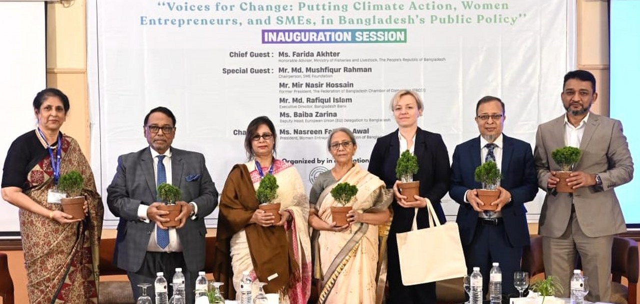 বক্তারা জলবায়ু পরিবর্তনের প্রভাব মোকাবিলায় নারী উদ্যোক্তা ও ক্ষুদ্র-মাঝারি শিল্পের (এসএমই) কার্যকর অংশগ্রহণ এবং এসব খাতে টেকসই নীতি সহায়তা নিশ্চিত করার আহ্বান জানান। তরা জলবায়ু সহনশীল অর্থনীতি গঠনে নারীদের অবদান এবং এসএমই খাতের সম্প্রসারণের প্রয়োজনীয়তা তুলে ধরেন। সরকারি-বেসরকারি অংশীদারিত্বের মাধ্যমে প্রবৃদ্ধি, কর্মসংস্থান সৃষ্টি এবং টেকসই উন্নয়ন লক্ষ্যমাত্রা অর্জনে একসঙ্গে কাজ করার আহ্বান জানান সেমিনারে অংশগ্রহণকারীরা।