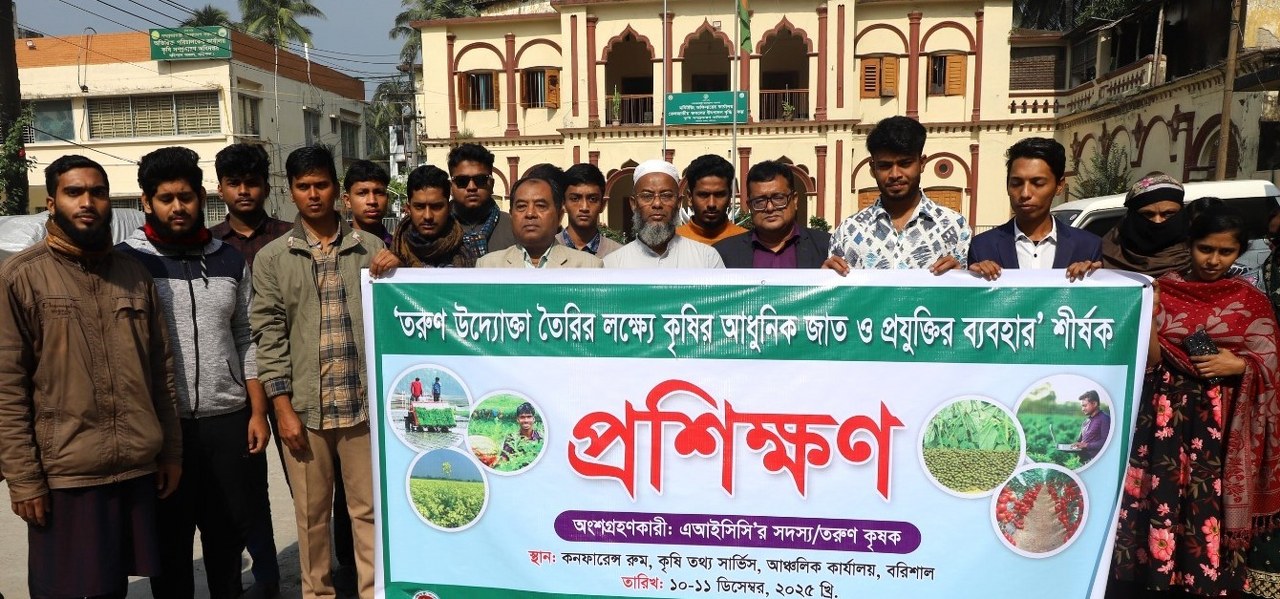 নাহিদ বিন রফিক (বরিশাল): উদ্যোক্তা তৈরির লক্ষ্যে কৃষির আধুনিক জাত ও প্রযুক্তি ব্যবহার বিষয়ক দুইদিনের প্রশিক্ষণ বরিশালে শুরু হয়েছে। এ উপলক্ষ্যে বুধবার (১০ ডিসেম্বর) নগরীর খামারবাড়িতে অবস্থিত কৃষি তথ্য সার্ভিসের হলরুমে এক উদ্বোধনী অনুষ্ঠানের আয়োজন করা হয়। অনুষ্ঠানে প্রধান অতিথি ছিলেন বাংলাদেশ ধান গবেষণা ইনস্টিটিউটের মুখ্য বৈজ্ঞানিক কর্মকর্তা ড. মুহম্মাদ আশিক ইকবাল খান। অনুষ্ঠানে সভাপতিত্ব করেন বরিশালের কৃষি সম্প্রসারণ অধিদপ্তরের উপপরিচালক মোসাম্মৎ মরিয়ম। বিশেষ অতিথি ছিলেন আঞ্চলিক কৃষি তথ্য অফিসার শেখ হাবিবুর রহমান। কৃষি তথ্য সার্ভিসের কর্মকর্তা নাহিদ বিন রফিকের সঞ্চালনায় অন্যদের মধ্যে বক্তব্য রাখেন আঞ্চলিক কৃষি গবেষণা ইনস্টিটিউটের বৈজ্ঞানিক কর্মকর্তা শর্মিলা দাস সেতু, পটুয়াখালীর পূর্ব গাবুয়া কৃষি তথ্য ও যোগাযোগ কেন্দ্রের সভাপতি মো. হাবিবুর রহমান, বরিশালের বাখরকাঠি কৃষি তথ্য ও যোগাযোগ কেন্দ্রের সদস্য প্রশান্ত ঘোষ প্রমুখ। প্রশিক্ষণে বরিশাল বিভাগের ৬ জেলার ৩০ জন তরুণ কৃষক অংশগ্রহণ করেন।