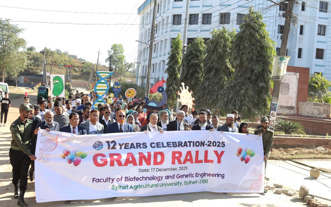 সিকৃবি সংবাদদাতা: বর্ণাঢ্য আয়োজনে সিলেট কৃষি বিশ্ববিদ্যালয়ের (সিকৃবি) বায়োটেকনোলজি ও জেনেটিক ইঞ্জিনিয়ারিং (বিজিই) অনুষদের এক যুগপূর্তি উদযাপন করা হয়েছে। আজ ১৭ ডিসেম্বর (বুধবার) দিবসটি জাঁকজমক ভাবে পালন উপলক্ষে নানাবিধ কর্মসূচি হাতে নেয়া হয়।