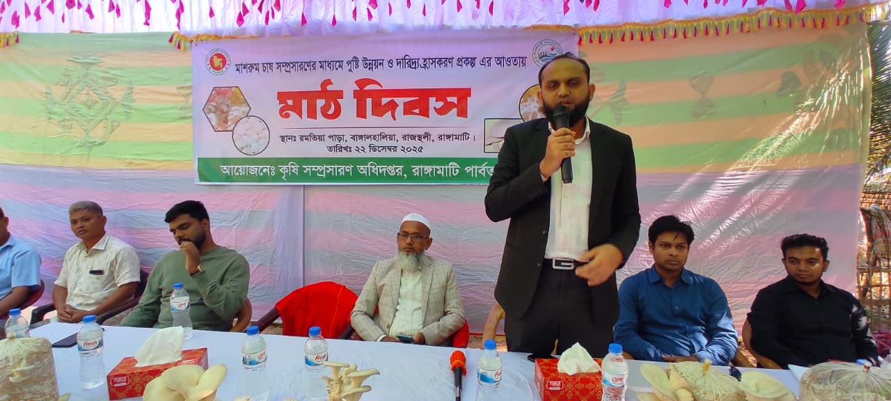 প্রধান অতিথির বক্তব্যে কৃষিবিদ মো. মনিরুজ্জামান মাশরুমের ঔষধি গুণাগুণ, পুষ্টিগুণ ও এর ব্যাপক বাণিজ্যিক সম্ভাবনার কথা তুলে ধরেন। তিনি বলেন, স্বল্প পুঁজিতে অধিক লাভজনক এই ফসল চাষের মাধ্যমে গ্রামীণ অর্থনীতি শক্তিশালী করা সম্ভব। একই সঙ্গে মাশরুম চাষে তরুণ প্রজন্মের অংশগ্রহণ বাড়িয়ে নতুন উদ্যোক্তা তৈরির লক্ষ্যে প্রয়োজনীয় প্রশিক্ষণ ও প্রদর্শনী কার্যক্রম জোরদার করা হবে বলেও তিনি আশ্বাস দেন।