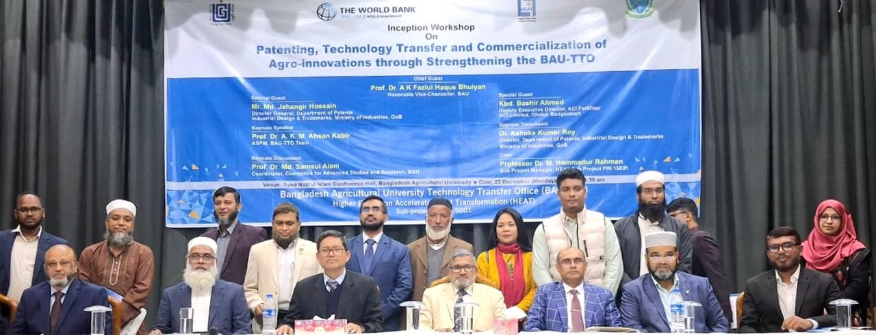 বিশ্বব্যাংক ও বাংলাদেশ বিশ্ববিদ্যালয় মঞ্জুরি কমিশনের (ইউজিসি) অর্থায়নে এবং উচ্চশিক্ষা ত্বরান্বিতকরণ ও রূপান্তর (হিট) প্রকল্পের আওতায় বাংলাদেশ কৃষি বিশ্ববিদ্যালয় টেকনোলজি ট্রান্সফার অফিস (বিএইউ-টিটিও) শক্তিশালীকরণের লক্ষ্যে কর্মশালাটি আয়োজন করা হয়।