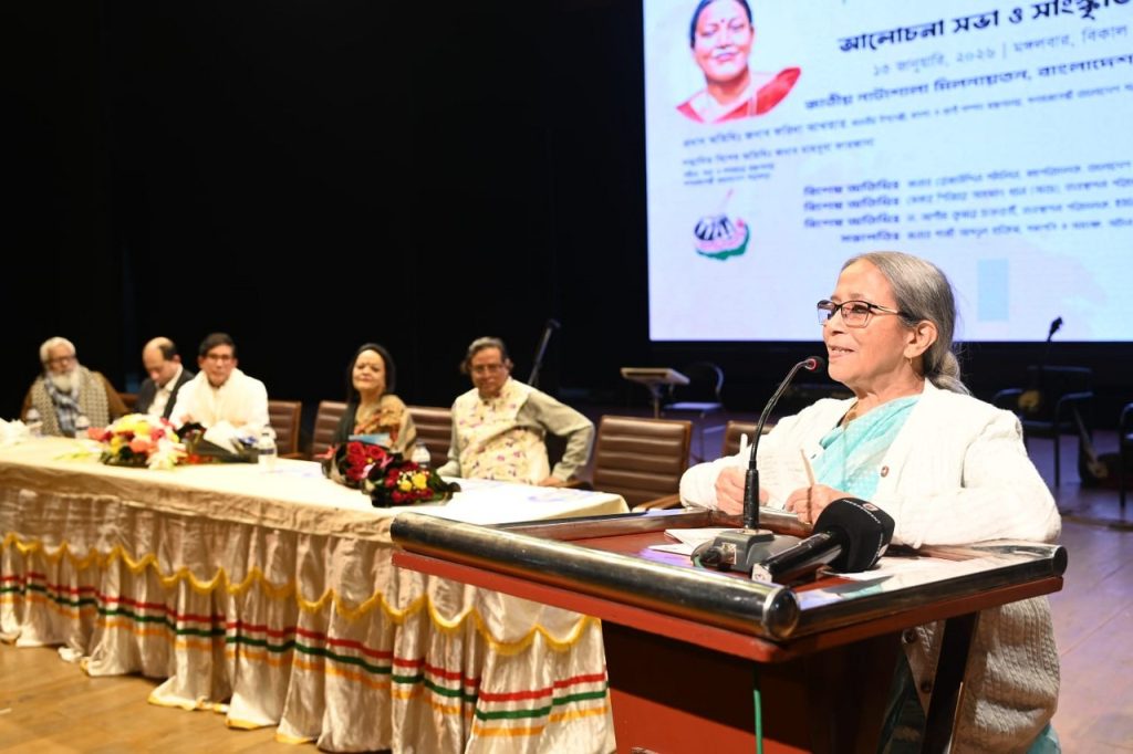 উপদেষ্টা আজ (১৩ জানুয়ারি) সন্ধ্যায় উপমহাদেশের কিংবদন্তি সংগীতশিল্পী ও ‘লালন সম্রাজ্ঞী’ ফরিদা পারভীনের জন্মদিন উপলক্ষ্যে বাংলাদেশ শিল্পকলা একাডেমির জাতীয় নাট্যশালা মিলনায়তনে অচিন পাখি সঙ্গীত একাডেমি-র উদ্যোগে আয়োজিত আলোচনা সভা ও মনোজ্ঞ সাংস্কৃতিক অনুষ্ঠানের প্রধান অতিথির বক্তব্যে তিনি এসব কথা বলেন।
