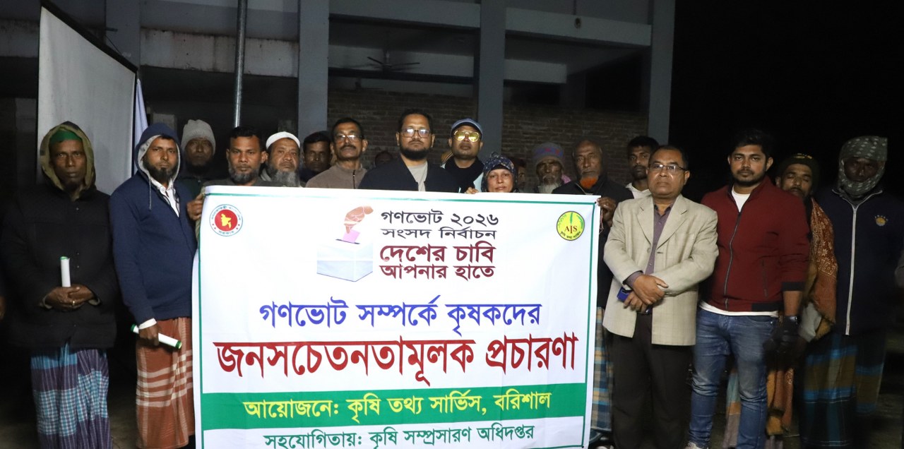 নাহিদ বিন রফিক (বরিশাল): গণভোট নিয়ে কৃষকদের সাথে কৃষি বিভাগের সচেতনতামূলক সভা রবিবার (১৮ জানুয়ারি) পটুয়াখালীতে অনুষ্ঠিত হয়েছে। সদর উপজেলার বদরপুরে কৃষি তথ্য সার্ভিস ও কৃষি সম্প্রসারণ অধিদপ্তরের যৌথ উদ্যোগে এই সভার আয়োজন করা হয়। এতে প্রধান অতিথি ছিলেন পটুয়াখালী সদরের উপজেলা কৃষি অফিসার মো. নাজমুল ইসলাম মজুমদার। কৃষি তথ্য সার্ভিসের কর্মকর্তা নাহিদ বিন রফিকের সভাপতিত্বে অনুষ্ঠানে বিশেষ অতিথি ছিলেন পটুয়াখালী সদরের কৃষি সম্প্রসারণ অফিসার মো. এখলাছুর রহমান। অনুষ্ঠানে অন্যদের মধ্যে বক্তব্য রাখেন গাবুয়া কৃষি তথ্য ও যোগাযোগ কেন্দ্রের সভাপতি মো. হাবিবুর রহমান সিকদার, সাধারণ সম্পাদক মো. হাবিবুর রহমান মৃধা, বদরপুর ইউনিয়ন পরিষদের সদস্য লাভলী বেগম প্রমুখ। সভা শেষে কৃষকদের গণভোটের লিফলেট বিতরণ করা হয়।