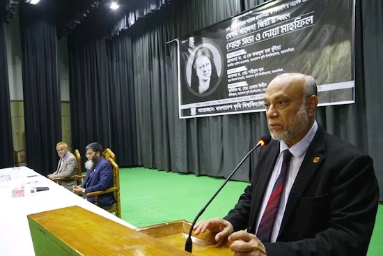 প্রধান অতিথির বক্তব্যে উপাচার্য অধ্যাপক ড. এ কে ফজলুল হক ভূঁইয়া বলেন, বেগম খালেদা জিয়া বাংলাদেশের রাজনৈতিক ইতিহাসের এক গুরুত্বপূর্ণ অধ্যায়। গণতন্ত্র প্রতিষ্ঠায় তাঁর ত্যাগ, সহনশীলতা ও নেতৃত্ব আগামী প্রজন্মের জন্য অনুকরণীয় দৃষ্টান্ত। একজন সাধারণ গৃহবধূ থেকে রাষ্ট্রের সর্বোচ্চ পদে অধিষ্ঠিত হয়ে বেগম খালেদা জিয়া যে রাজনৈতিক দৃঢ়তা ও মানবিকতা দেখিয়েছেন, তা বিরল। তিনি ছিলেন একজন দেশপ্রেমিক, আদর্শবান ও সহনশীল রাজনৈতিক নেতা। অনুষ্ঠানে উপস্থিত সবাইকে তাঁর আত্মার মাগফিরাত কামনায় দোয়া করার আহ্বান জানান উপাচার্য।