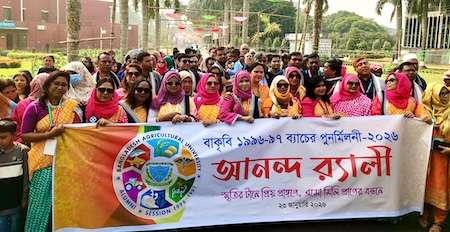 বাকৃবি সংবাদদাতা: ‘স্মৃতির টানে প্রিয় প্রাঙ্গণে, এসো মিলি প্রাণের বন্ধনে’ এই বাক্যের অন্তর্নিহিত ভাবধারা যেন ধরা পড়লো বাংলাদেশ কৃষি বিশ্ববিদ্যালয়ের (বাকৃবি) সবুজ প্রাঙ্গণে। প্রায় তিন দশক পেরিয়ে আসা বন্ধুত্ব, স্মৃতি আর বিশ্ববিদ্যালয় জীবনের টানে ছুটে এসেছেন দুর দুরন্ত থেকে। আনন্দ, আবেগ আর স্মৃতিচারণের নানা আয়োজনের মধ্য দিয়ে শুরু হয়েছে বিশ্ববিদ্যালয়ে ১৯৯৬-৯৭ শিক্ষাবর্ষের শিক্ষার্থীদের দুই দিনব্যাপী পুনর্মিলনী অনুষ্ঠান।