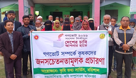 নাহিদ বিন রফিক (বরিশাল): গণভোট নিয়ে কৃষি বিভাগের সাথে কৃষকদের সচেতনতামূলক সভা গতকাল (২৫ জানুয়ারি)সন্ধ্যায় ঝালকাঠিতে অনুষ্ঠিত হয়েছে। নলছিটি উপজেলার ভৈরব পাশা ইউনিয়ন পরিষদে কৃষি তথ্য সার্ভিস ও কৃষি সম্প্রসারণ অধিদপ্তরের যৌথ উদ্যোগে এই সভার আয়োজন করা হয়।