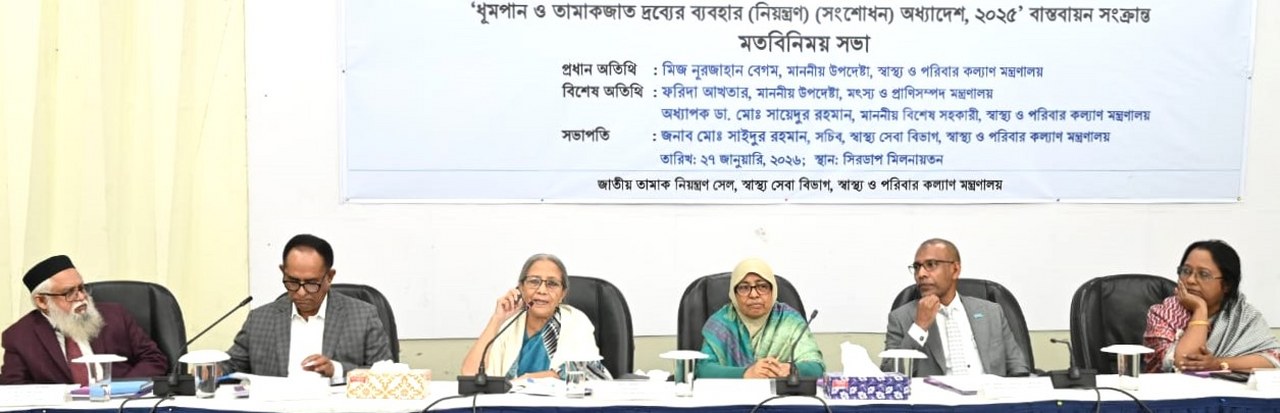 মঙ্গলবার (২৭ জানুয়ারি) সকালে রাজধানীর সিরডাপ মিলনায়তনে ‘ধূমপান ও তামাকজাত দ্রব্যের ব্যবহার (নিয়ন্ত্রণ) (সংশোধন) অধ্যাদেশ, ২০২৫’ -এর কার্যকর বাস্তবায়ন বিষয়ে এক মতবিনিময় সভায় বিশেষ অতিথির বক্তব্যে এসব কথা বলেন। স্বাস্থ্য ও পরিবার কল্যাণ মন্ত্রণালয়ের স্বাস্থ্য সেবা বিভাগের অধীন জাতীয় তামাক নিয়ন্ত্রণ সেল এ মতবিনিময় সভার আয়োজন করে।