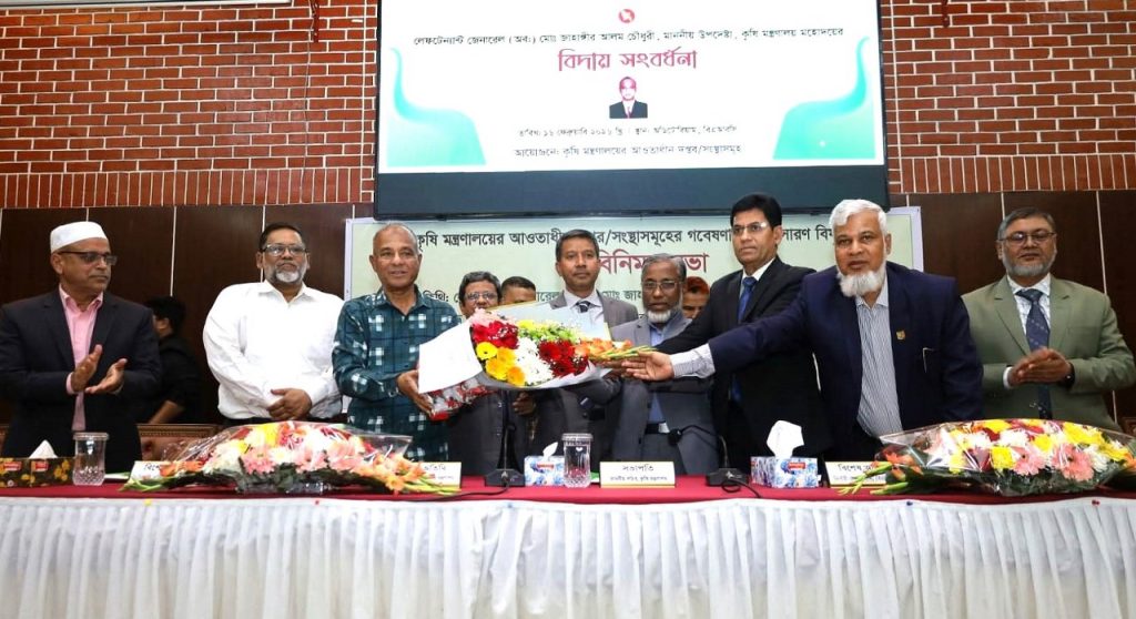 কৃষি সচিব ড. মোহাম্মদ এমদাদ উল্লাহ মিয়ানের সভাপতিত্বে বিদায় সংবর্ধনা অনুষ্ঠানে কৃষি মন্ত্রণালয়ের বিভিন্ন দপ্তর/সংস্থা প্রধানগণ বক্তব্য রাখেন।