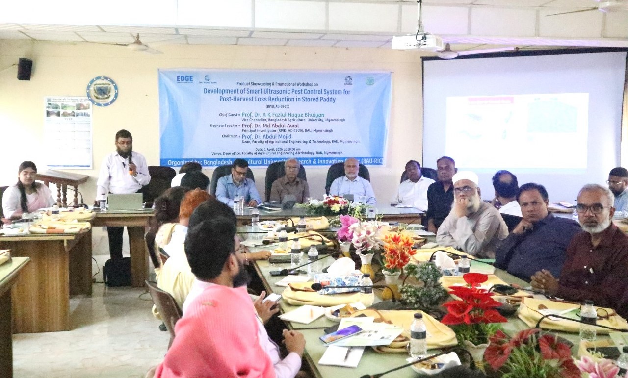 বাকৃবি সংবাদদাতা : সংরক্ষিত ধানে পোকামাকড়ের আক্রমণে প্রতি বছরই উল্লেখযোগ্য ক্ষতির মুখে পড়তে হয় কৃষকদের। এই ক্ষতি কমাতে আল্ট্রাসনিক প্রযুক্তিনির্ভর নতুন এক উদ্ভাবন নিয়ে কাজ করছেন বাংলাদেশ কৃষি বিশ্ববিদ্যালয়ের (বাকৃবি) একদল গবেষক। রাসায়নিকমুক্ত নতুন এই প্রযুক্তিটিকে সকলের কাছে পরিচিত করে তুলতে ‘ডেভেলপমেন্ট অব স্মার্ট আল্ট্রাসনিক পেস্ট কন্ট্রোল সিস্টেম ফর পোস্ট-হারভেস্ট লস রিডাকশন ইন স্টোরড প্যাডি’ শীর্ষক কর্মশালার আয়োজন করা হয়।