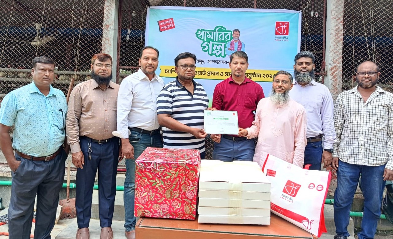 নাটোর সংবাদদাতা: দেশের অন্যতম শীর্ষস্থানীয় পশুখাদ্য উৎপাদনকারী প্রতিষ্ঠান আমান ফিড পিএলসি আয়োজিত ‘খামারির গল্প’ প্রতিযোগিতার ন্যাশনাল চ্যাম্পিয়ন নাটোরের সফল খামারি মো. রেজাউল করিমের হাতে আনুষ্ঠানিকভাবে সম্মাননা সার্টিফিকেট ও পুরস্কার সামগ্রী তুলে দেওয়া হয়েছে। সম্প্রতি নাটোরে এক আনন্দঘন অনুষ্ঠানের মাধ্যমে এই পুরস্কার হস্তান্তর সম্পন্ন হয়।