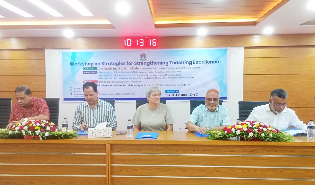 সিকৃবি সংবাদদাতা: সিলেট কৃষি বিশ্ববিদ্যালয়ের (সিকৃবি) ভাইস-চ্যান্সেলর প্রফেসর ড. মো. আলিমুল ইসলাম বলেছেন, শিক্ষার মানোন্নয়নের জন্য আধুনিক ও শিক্ষার্থী-কেন্দ্রিক পাঠদান পদ্ধতি, তথ্যপ্রযুক্তির কার্যকর ব্যবহার, নিয়মিত প্রশিক্ষণ ও পেশাগত উন্নয়ন কার্যক্রম এবং গবেষণার সঙ্গে শিক্ষাদানের সমন্বয় অপরিহার্য। পাশাপাশি শিক্ষকদের মধ্যে উদ্ভাবনী চিন্তাভাবনা ও অভিজ্ঞতা বিনিময়ের সুযোগ সৃষ্টি করতে হবে, যাতে তারা আন্তর্জাতিক মানের শিক্ষা প্রদান করতে সক্ষম হন।